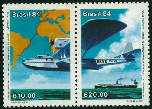 Hydroplány typu DORNIER-WALL (OBR.2) nakládaly poštu v německém Stuttgartu, první mezipřistání bylo ve španělské Seville, další v Las Palmas (Kanárské ostrovy) a poté v africkém přístavu Bathurst (dnešní Banjul v Gambii). Odtud hydroplán letěl přes Atlantik, do brazilského Natalu. Zhruba v polovině letu přes oceán hydroplán přistál k parníku - plovoucí základně. Hydroplán vklouzl na rampu, odkud byl lodním jeřábem vyzvednut na palubu lodi, na zařízení zvané „katapult“. Bylo doplněno palivo a hydroplán byl katapultován k dalšímu letu na jihoamerickou pevninu – do brazilského Natalu (OBR.3). Trasa přeletu přes oceán je znázorněna na OBR.1. Obdobně probíhaly zpáteční lety do Evropy. Listové zásilky byly opatřovány potvrzovacím razítkem Německé letecké pošty (OBR.4). Toto razítko se používalo i pro letecké zásilky přepravované vzducholoděmi Zeppelin.