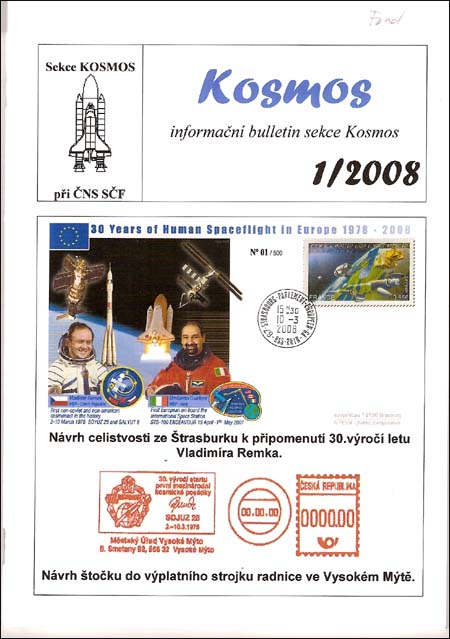 Se svolením předsedy SČF obstarává úvod jeho článek Úvodní slovo otištěný také v Informacích SČF 1/2008. Článek analyzuje aktuální situaci na poli organizované filatelie. Následuje článek připomínající 30. výročí letu kosmické lodě Sojuz 28 s vyobrazením razítek a obálek k tomuto letu. Dále jsou otištěny dva články o letech raketoplánů, a to STS-120 a STS-122. Novinky z ruského pilotovaného programu přináší článek Sojuz TMA-8. Druhým pokračováním je článek Čínská měsíční sonda. Na článek Události v kosmonautice navazuje článek Připravované lety raketoplánů. Ve třetím pokračování jsou představeny Čínské celinové pohlednice. Další ukázky představuje páté pokračování Ilegální vydání. Zajímavou výstavu připravenou k výročí letu představil článek Vladimír Remek na výstavě v Havířově. Závěr čísla tvoří Filatelistické novinky.