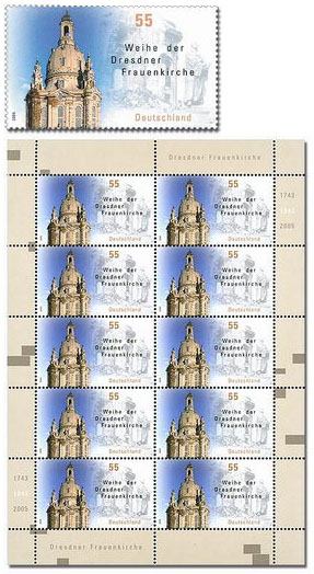 Poznámka: Po šedesáti letech od leteckých náletů na Drážďany, kdy lehla popelem velká část města, byl znovu vysvěcen kostel Panny Marie, známý též pod názvem Frauenkirche. Skvostná stavba vrcholného baroka byla rekonstruována s detailní přesností na základě původních plánů a dochovaných fotografií. Další info na http://www.e-architekt.cz/index.php?PId=1587&KatId=9