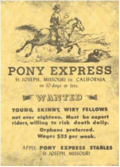 Náborový leták společnosti Pony express nabízel dvakrát vyšší mzdu než kolik činil výdělek dělníka v továrně.