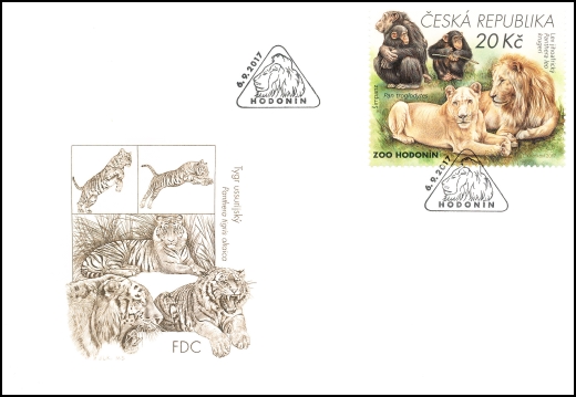 2. 0937: 20 Kč – ZOO Hodonín: lev jihoafrický a šimpanz