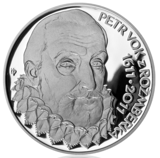 400. výročí úmrtí posledního představitele šlechtického rodu Rožmberků Petra Voka z Rožmberka připomene stříbrná dvousetkorunová mince. Umělecký návrh mince, která je poslední ze čtveřice dvousetkorunových mincí vydaných v roce 2011, vznikl na základě celostátní anonymní soutěže vyhlášené Českou národní bankou. K realizaci byl vybrán a doporučen návrh averzní strany pana Jaroslava Bejvla a návrh reverzní strany pana Petra Horáka. Česká mincovna razí mince pro ČNB ze stříbra o ryzosti 0,925. Běžné a špičkové provedení se liší povrchovou úpravou a provedením hrany. U mincí špičkové kvality je pole mince vysoce leštěné a reliéf je matován, hrana je hladká, zatímco mince běžné kvality mají hranu vroubkovanou. Průměr mince je 31 mm, hmotnost 13 g a síla 2,35 mm. Na líci dvousetkoruny je vyobrazen klášter ve Vyšším Brodě a pohřební štít Petra Voka. V opisu stojí název státu „ČESKÁ REPUBLIKA“ a v řádku pak nominální hodnota mince „200 Kč“. Klášter založil Vok z Rožmberka roku 1259 a povolal sem cisterciáky z rakouského Wilheringu. Na přání zakladatele se Vyšší Brod stal rodovým klášterem a od od 13. do 17. století v něm bylo pohřbeno deset generací této rodiny. Vyšebrodský chrám tak představuje nejvýznamnější české rodové mauzoleum. Rubové straně dominuje portrét Petra Voka. Po obvodu mince vpravo je text „PETR VOK Z ROŽMBERKA“ a letopočty 1611–2011. Ke každé minci se dodává katalogová karta bílé barvy, na níž je popis mince a její plastické vyobrazení. Limitovaný náklad 12400 kusů.