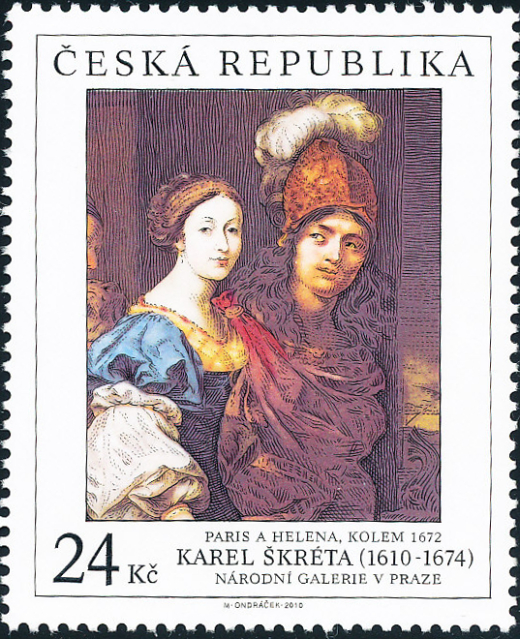 Paris a Helena (kolem 1672) - Národní galerie v Praze. Karel Škréta patří k nejvýznamnějším českým barokním malířům 17 století. Škrétům tehdy patřil predikát vladyků, říkali si přídomkem Šotonovský ze Závořic. Žili v Praze a v Kutné Hoře, kam přišli z jihočeské Olejnice. Škrétův otec Konrád zemřel, když byly malému Karlovi tři roky. Malý Škréta byl pak poslán na výchovu ke svému strýci Pavlovi Škrétovi, který mu mohl dopřát bohatou humanistickou výchovu v Týnské škole. Karel Škréta se tehdy naučil latinsky, německy a francouzsky, což mu velmi pomohlo v jeho pozdějších cestách za zkušenostmi. Malovat se pravděpodobně naučil u některého ze dvorních mistrů na královském dvoře. Do Prahy se Škréta vrátil v roce 1638 a brzy se stal jedním z tamních nejvyhledávanějších malířů a poté i nejvýznamnější osobností české ranně barokní malby. Jeho dílna byla jednou z největších v Praze a Škréta v ní zaměstnával celou řadu učedníků a tovaryšů. Proslavil se hlavně svými vynikajícími portréty, oltářními malbami, kresbami a návrhy ilustrací. Jen zřídkakdy však maloval obrazy s mytologickými tématy. V pozdějších dílech začal používat techniku šerosvitu. Škréta byl autorem Svatováclavského cyklu pro augustiniánský klášter na Zderaze na Novém Městě v Praze (1641) a pracoval také na řadě oltářních obrazů pro nejvýznamnější z pražských kostelů (kostel sv. Tomáše a sv. Mikuláše na Malé Straně, sv. Štěpána, Panny Marie před Týnem) a chrám Nanebevzetí Panny Marie cisterciáckého kláštera v Plasech. Škrétovi se nakonec (skrze jeho úsilí domoci se spravedlnosti prostřednictvím Dvorské královské komory) podařilo získat zpět rodinný majetek, zabavený po útěku jeho příbuzných z Čech, a následně byl velmi majetným malířem.