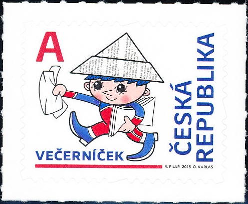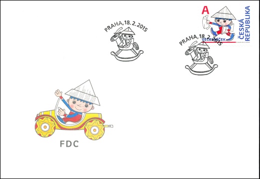 Se známkou se vydává obálka prvního dne včetně příležitostného poštovního razítka. V obrazové části obálky je kresba Večerníčka v autě a je vytištěna plnobarevným ofsetem. Na razítku je Večerníček na houpacím koni a text: Praha, 18. 2. 2015.