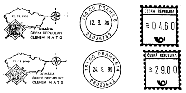 Nicméně již v roce 1999 se objevila dosud jediná výjimka ve vzhledu armádních otisků a tou je VO ke vstupu ČR do NATO. Má jinou podobu, používá se od března 1999 na dvou poštách a používá se dodnes.