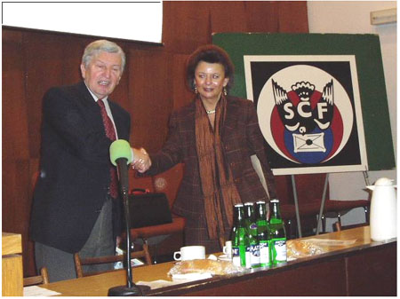 Na následující fotografii vítá předseda SČF zástupkyni České pošty, paní Alenu Ryškovou.