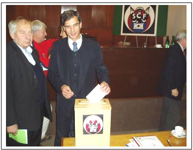 Na přiložené fotografii vidíte našeho předsedu při volbě nového vedení SČF. V této době ještě nevěděl, jak „silným“ protikandidátem na funkci místopředsedy SČF bude.
